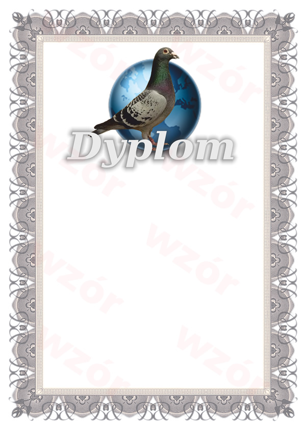Projekty dyplomów wykonywane są wyłącznie na zamówienie. Każdy dyplom projektowany jest indywidualnie czy to dla Wspólnych Gołębników czy dla długodystansowych lub też dyplomy na wystawy gołębi i szczególne okazje.
