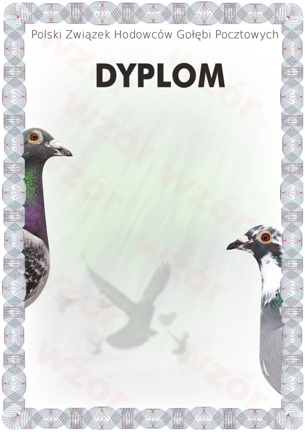 Projekty dyplomów wykonywane są wyłącznie na zamówienie. Każdy dyplom projektowany jest indywidualnie czy to dla Wspólnych Gołębników czy dla długodystansowych lub też dyplomy na wystawy gołębi i szczególne okazje.