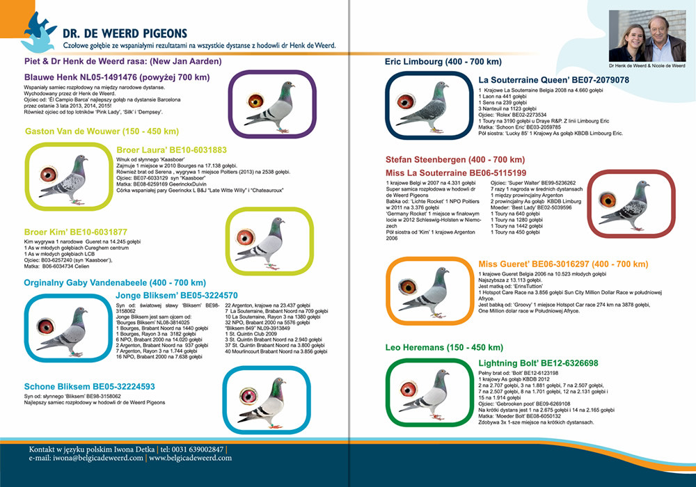 W swojej pracy miałem przyjemność współpracować zarówno bezpośrednio, jak i pośrednio z wieloma cenionymi firmami oraz hodowcami, znanymi w środowisku miłośników gołębi na całym świecie. Podczas realizacji projektów w gazecie Świat Gołębi Sportowych zetknąłem się z wieloma wybitnymi hodowcami, zarówno z Polski, jak i z zagranicy. Wśród nich znaleźli się m.in. takie sławy jak Jaap Koehoorn oraz dr Henk de Weerd, których obecność w kwartalniku była dla naszych czytelników, jak i dla nas, szczególnym wydarzeniem.
